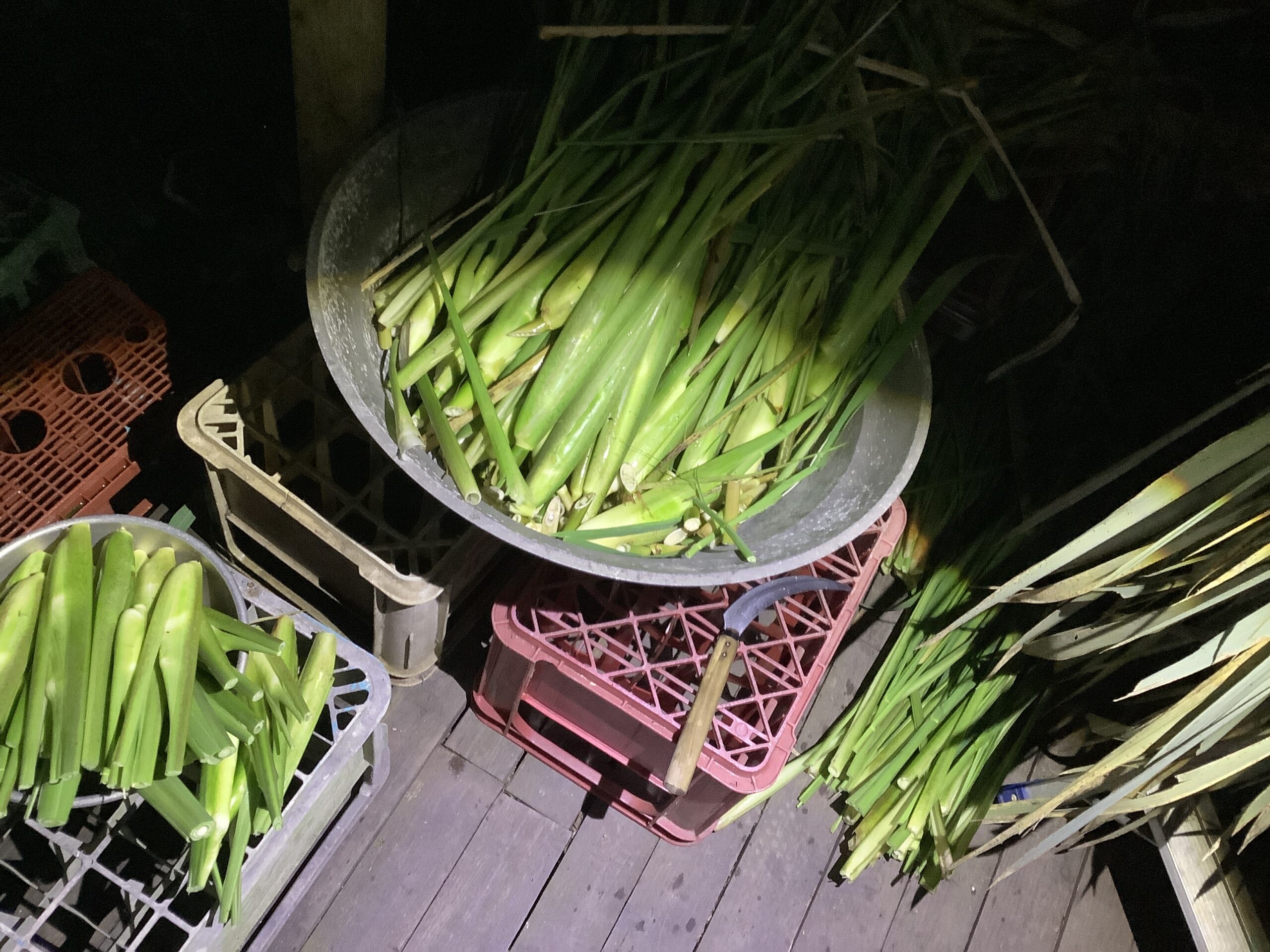 今夜は、夜おそくまでテラスでマコモ仕事。