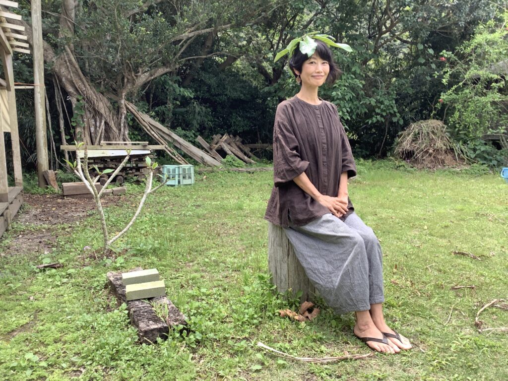 即興でビワの葉帽子をつくってみた。