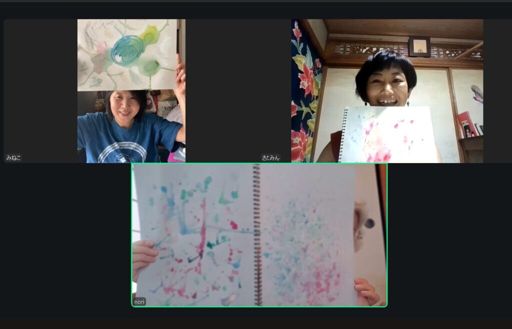 そして、数日後、、、。水の性質をわかりながらの、絵の具のアート表現ができていたよ、と、自分を距離をもって見ていました。また、作品を踊ることで理解が深くなることを再認識していました。