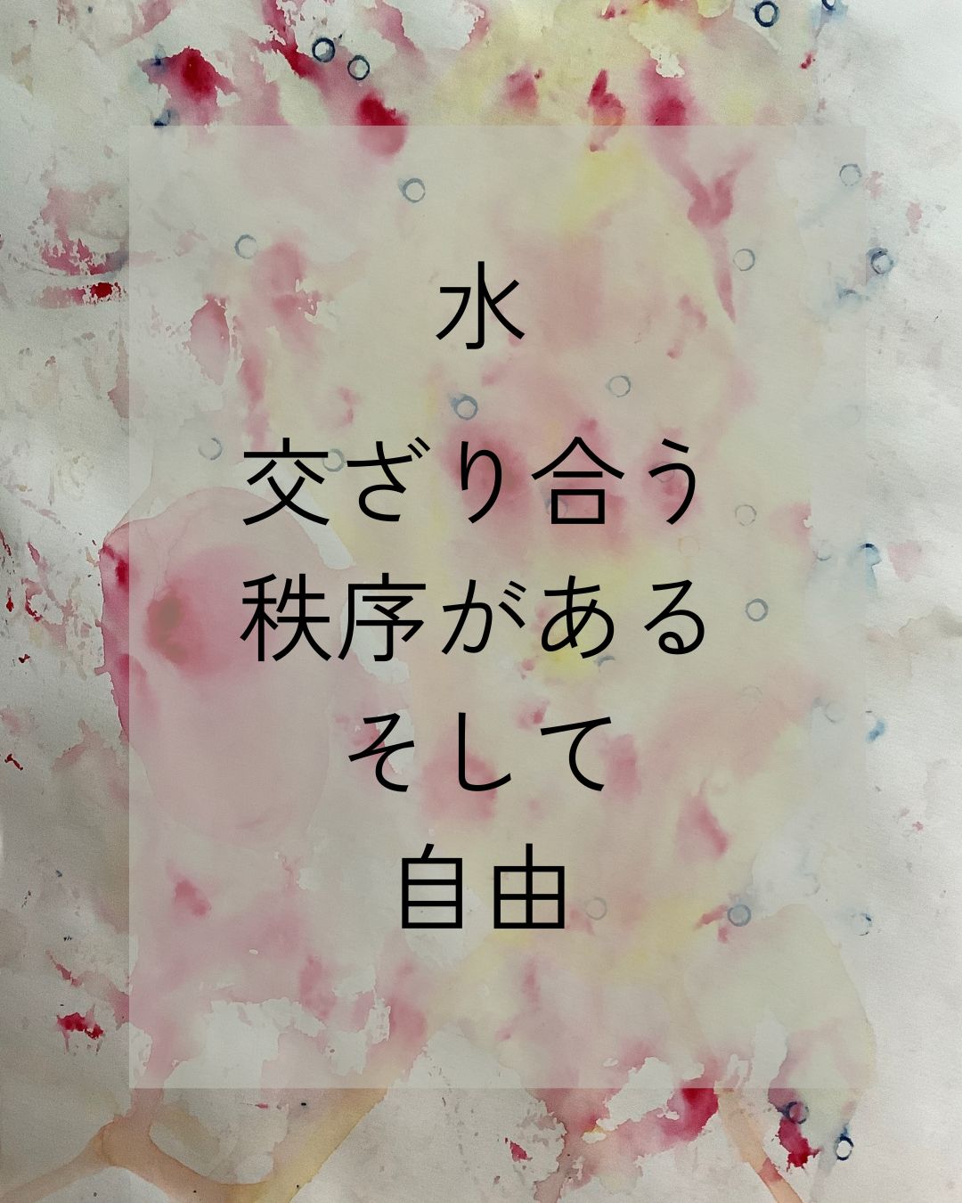 そして、数日後、、、。水の性質をわかりながらの、絵の具のアート表現ができていたよ、と、自分を距離をもって見ていました。また、作品を踊ることで理解が深くなることを再認識していました。
