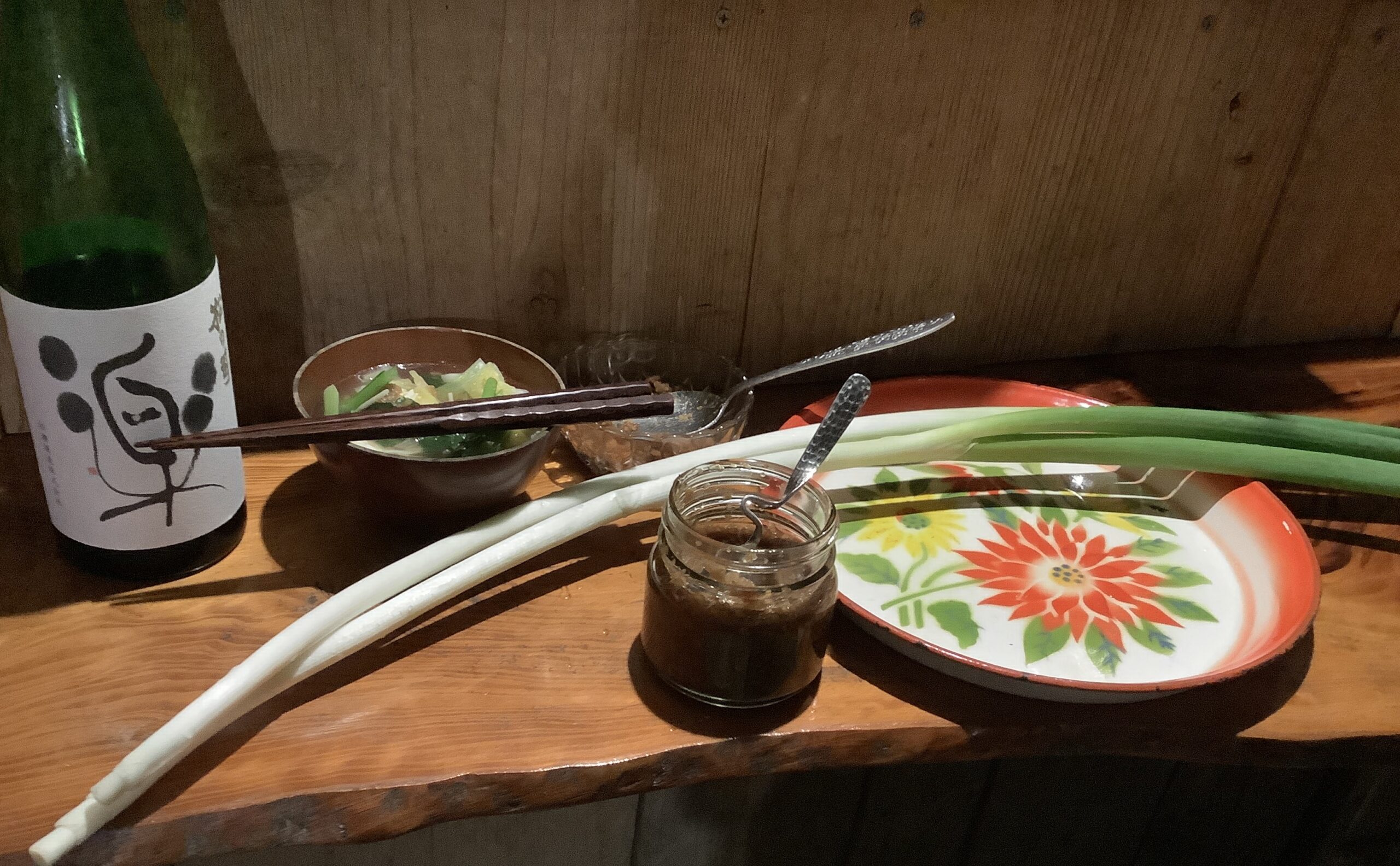 富山の葱を、まるごと手に持ってバーナーで焼きながら